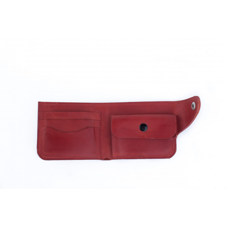 4 отделения для карточек. Отделение для купюр. Карман на кнопке для мелочи. Размер 10х10 см.