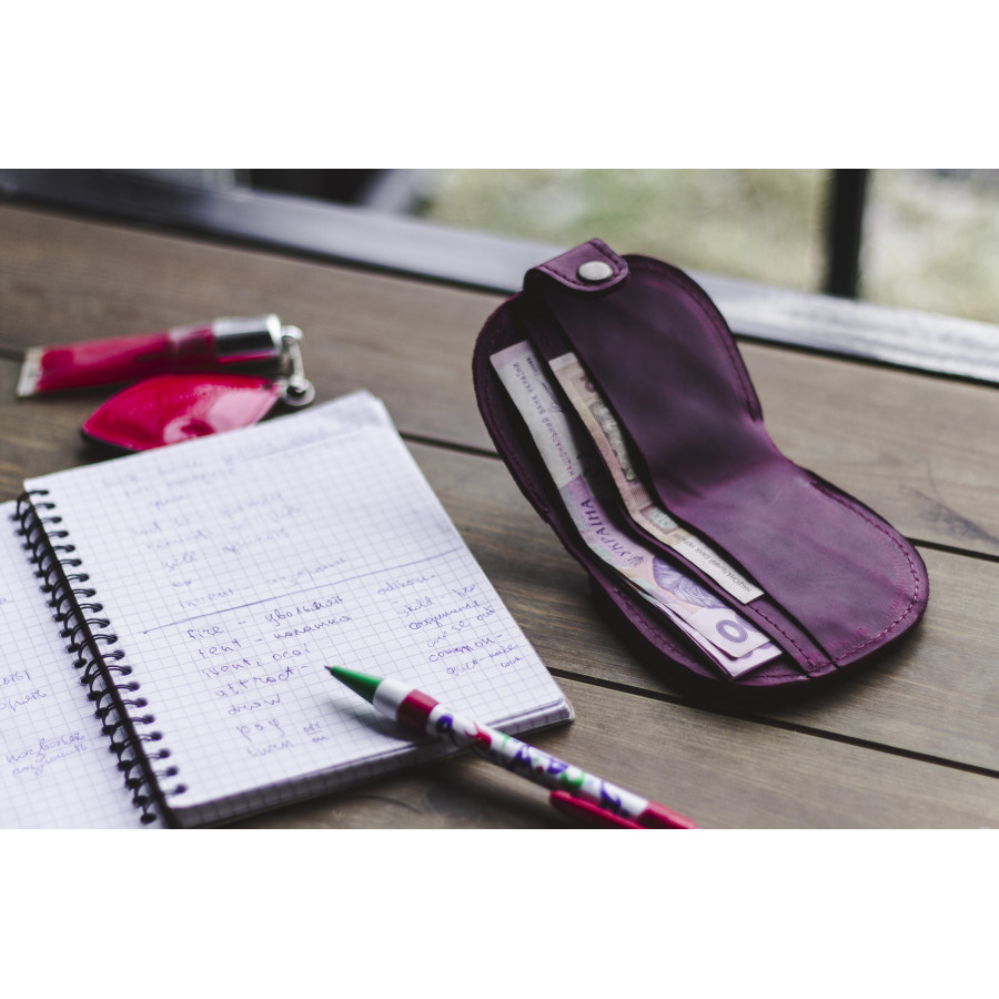 Два отделения для купюр. Одно для карточек. Размер 9х9 см.