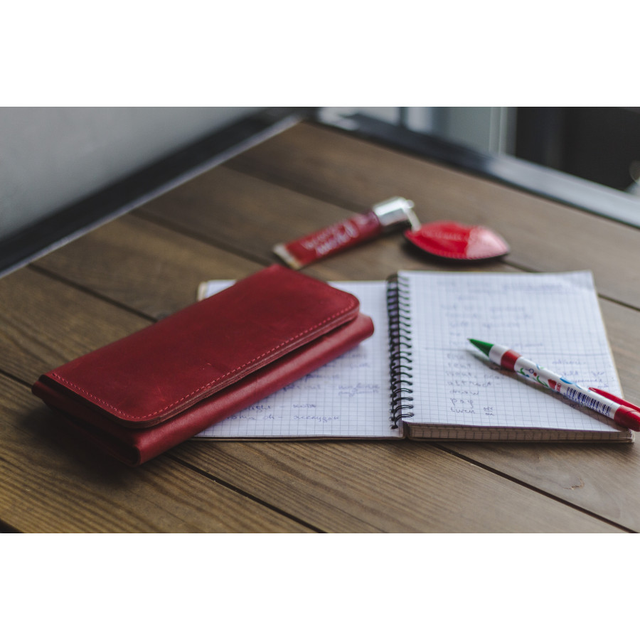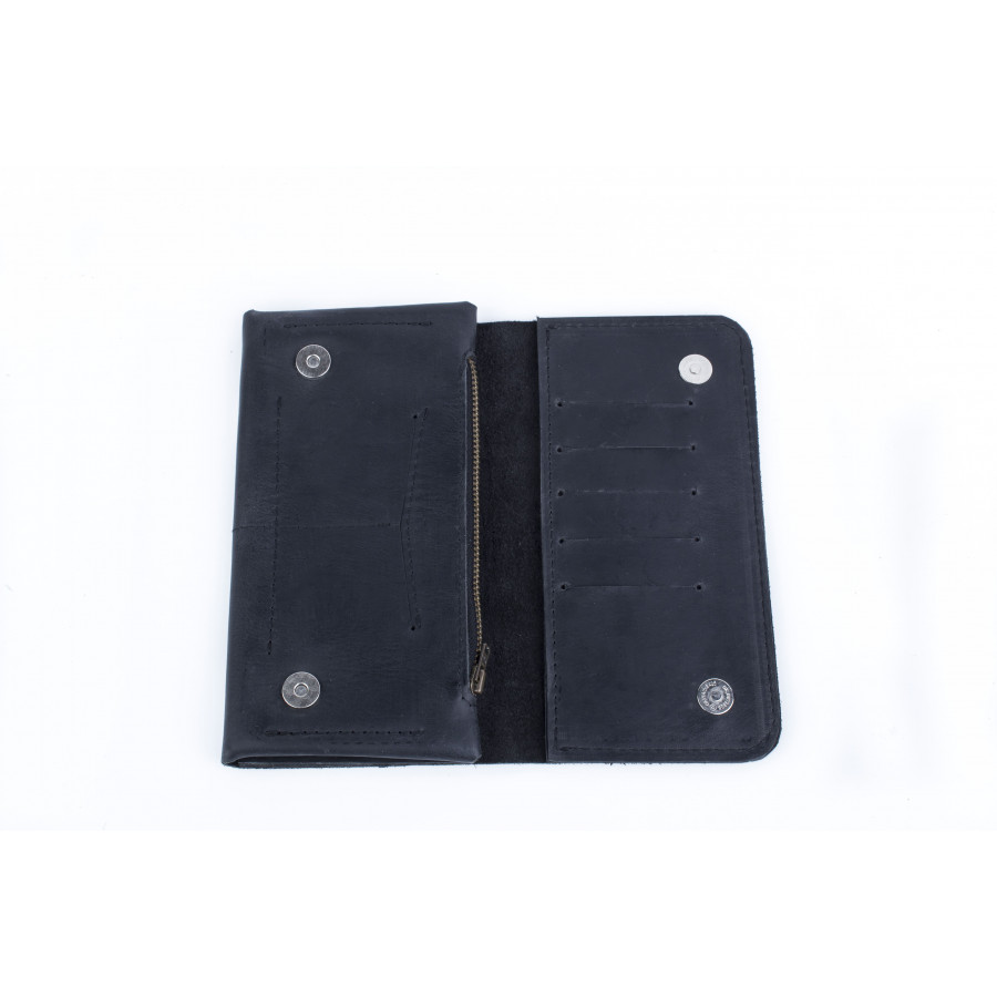 9 отделений для карт; 2 отделения для купюр; Карман на замке для мелочи; Размер: 20х10 см.