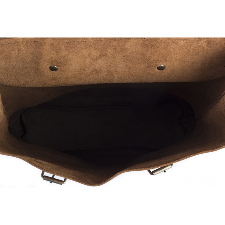 Основное отделение закрывается крышкой на два ремня. Карман(со стороны спины) 15х21, для документов или кошелька. Размер 30×37 см.