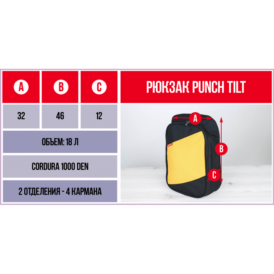 • Модель: punch-backpack-tilt-black-yellow